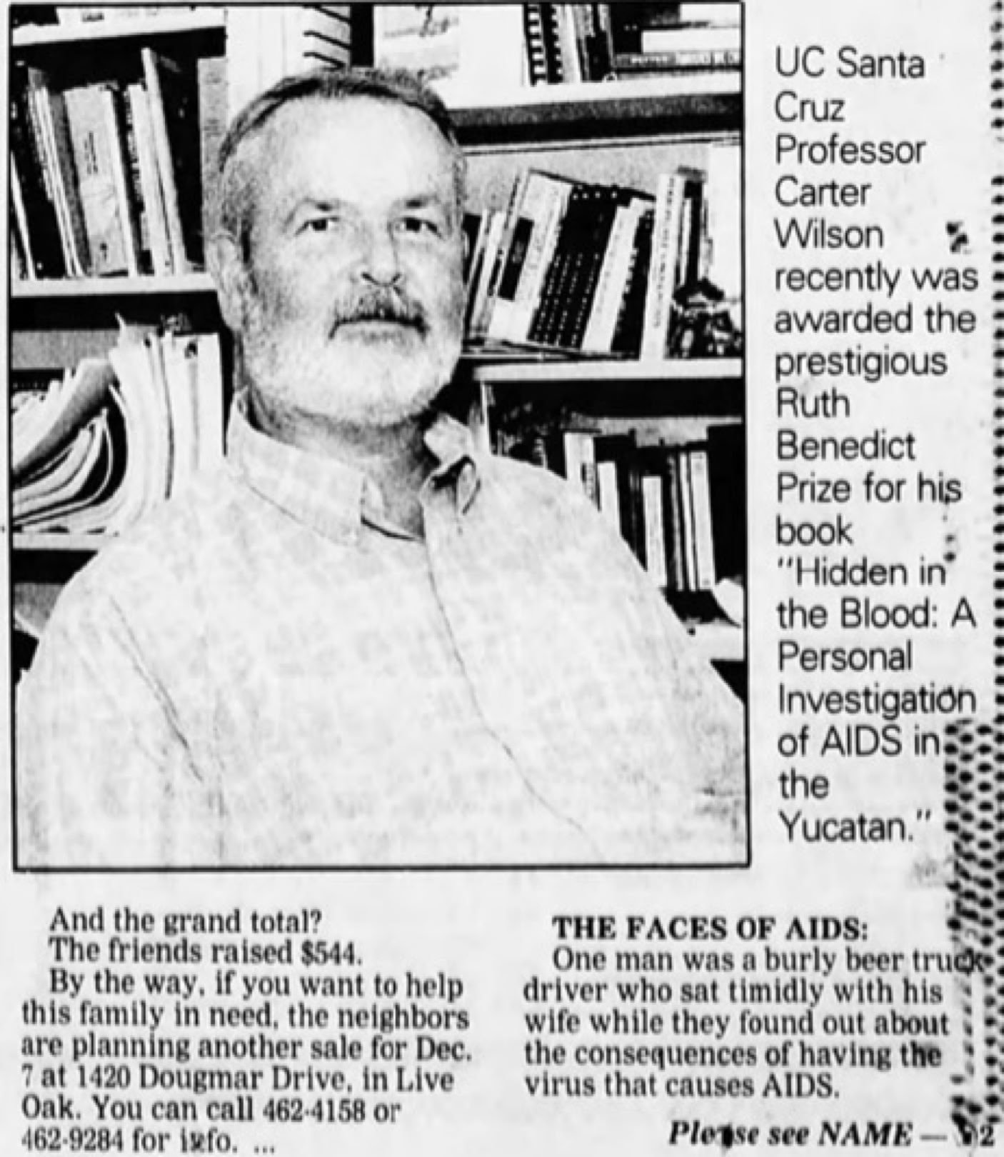 "For those who hanker for voices, Carter Wilson's Hidden in the Blood: A Personal Investigation of AIDS in the Yucatan offers just the nostrum: this humane little memoir is a polished and revelatory gem. Wilson, a novelist, embarks on an investigation of AIDS and sexuality in a part of Mexico that is beginning to see its first cases of HIV disease. He has anthropological training, and it shows: the book is ethnographically rich but unburdened by the jargon of our field. Wilson offers a compelling and textured portrait of an AIDS clinic serving Merida, the large but conservative capital of the Mayan lowlands."